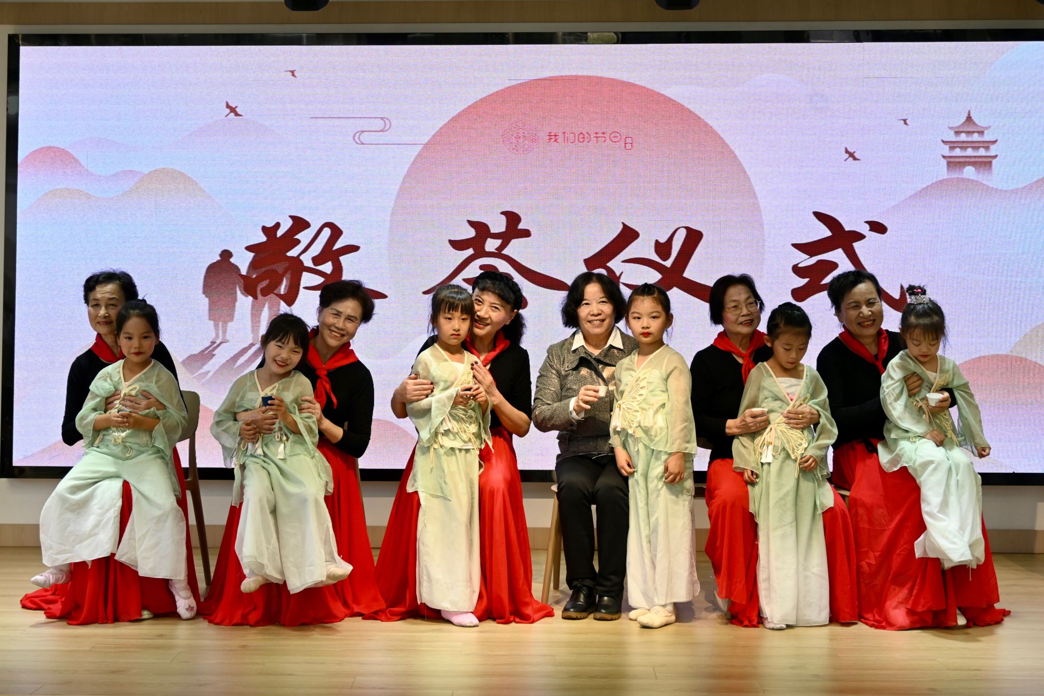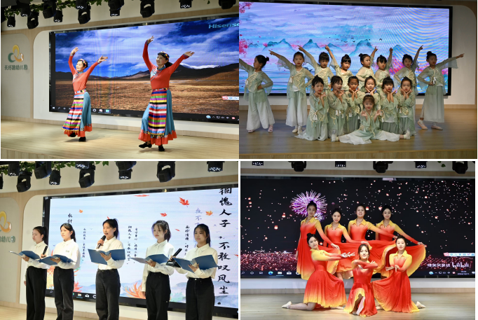 的本研党支部学生以慷慨激昂的诗歌,一同歌颂了老一辈同志们的无私奉献与奋斗精神。期间,老同志们热情洋溢,以传统舞蹈形式,共同庆祝这个特殊的节日;幼儿园小朋友、青年教师及青年学生,同样带来舞蹈表演,演出极富青春的热情和活力,将历史的厚重与现代的活力巧妙融合。表演结束后,青年学生带领小朋友们向退休老同志们行重阳礼,敬奉菊花茶,展现传统节日文化,表达尊老敬贤的人文关怀,将整个活动的氛围推向高潮。