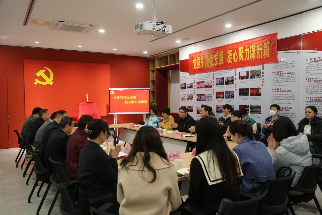 开展“党建+”模式在引领学科交叉融合发展、凝聚师生团结奋进以及助力乡村振兴方向的目标和工作进展。戚秋生从商圈组织建设、队伍建设和联动发展三个方面,介绍了在新经济组织、新社会组织中开展“两新”党建,达到从促进企业、员工健康发展到促进商圈高质量发展的历程、工作方法和取得的成绩。与会的政企事业单位代表分别就党建工作方法、党建引领促进业务发展经验、优势互补、资源共享以及共建意愿进行了充分的交流。