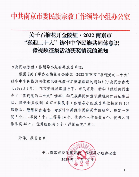 近日,由南京市委统战部指导,南京市民宗局、新华日报社共同主办的“石榴花开金陵红·南京市‘喜迎党的二十大’铸牢中华民族共同体意识微视频征集活动中,日本无码