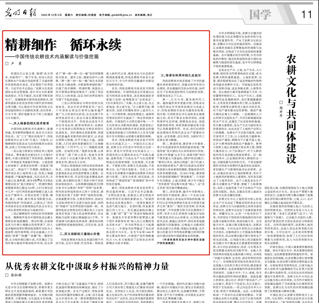 院长卢勇教授的《精耕细作 循环永续——中国传统农耕技术内涵解读与价值挖掘》一文。
