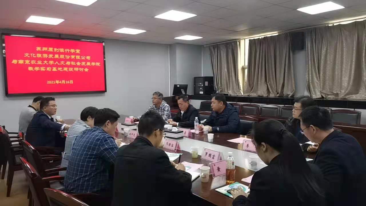 在6041会议室召开苏州牧谷农场校外教学实习基地建设研讨会,商谈苏州牧谷农场教学实习基地2021年合作事宜。副校长胡峰出席会议并对校外实习基地建设作了指导。参加会议的有苏州原创读行学堂文化旅游发展股份有限公司董事长汤建东、副总汤文豪,苏州相城区人大常委会副主任孙伟强,学院党委书记姚科艳、院长姚兆余、副书记冯绪猛、副院长朱利群、学院党委书记助理罗国富和旅游管理系主任崔峰、农村发展系主任余德贵、文化管理系主任李明、旅游管理系教师黄颖。会议由朱利群主持。
