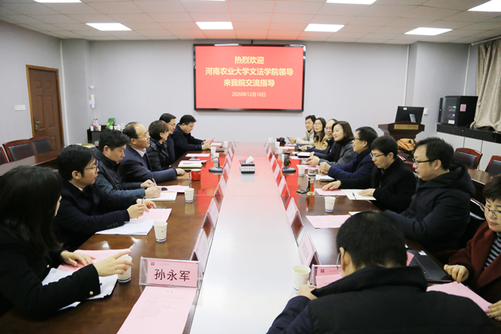 12月10日上午,河南农业大学文法学院党委书记牛娟、院长王晓勇、副院长李伟、行政管理系主任管煜武、法律系副主任赵菊敏、汉语言文学系副主任王睿、社会学系副主任谢娅婷、院党政办主任张二龙等一行8人前来日本无码
