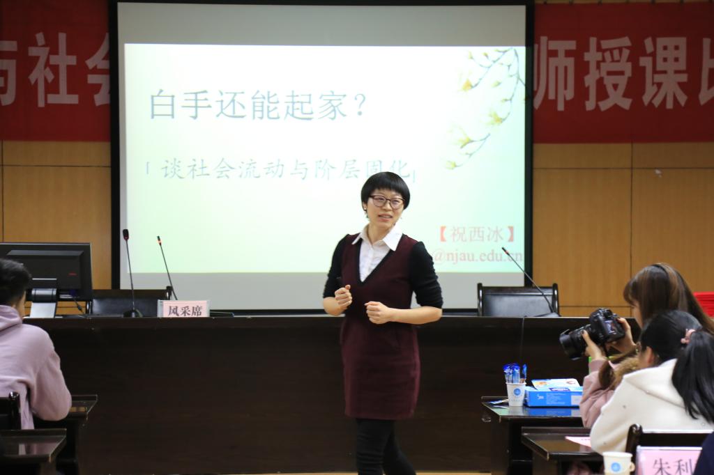 参赛的19位青年老师,分别来自学院的7个系。授课内容涉及广告学、大学语文、SPSS软件应用、旅游概念的古今差异、速裁程序、旅游研究方法、农业起源、农村社会学、旅游目的地营销、管理学原理、生态农业、蒙古族舞蹈、演员职业精神、美洲作物史话、三弦和七弦、社会流动与阶层固化、中国戏曲艺术、民俗文化等等。比赛过程中,大家结合各自的专业特点,运用丰富的教学手段和方法,八仙过海,各显神通,充分展现了自我风采,不时赢得现场师生的阵阵掌声。一些精彩的授课,还引得现场观摩的老师频频举起手机录制视频。