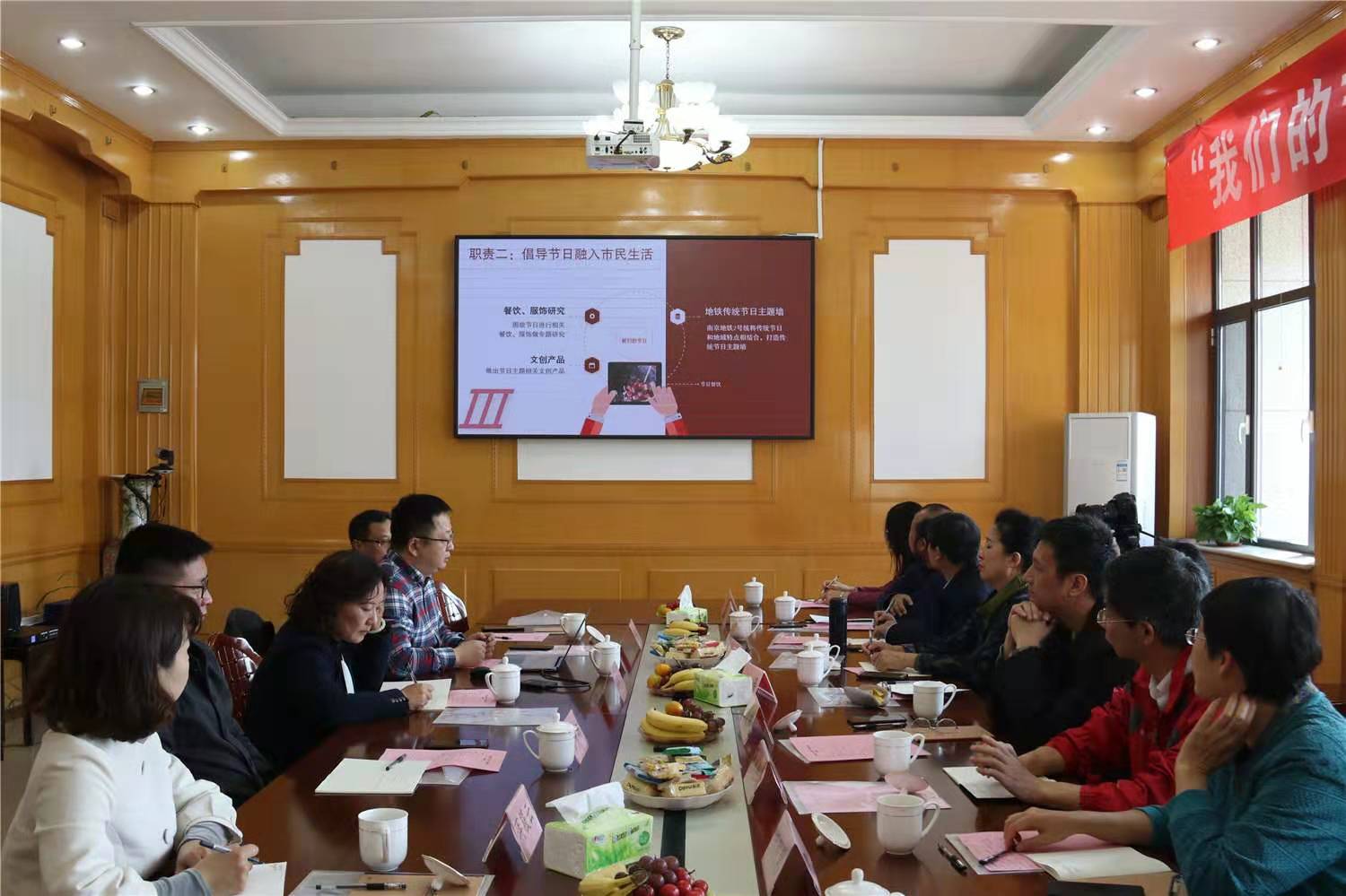 民俗学研究所在中国民俗学会2019年年会期间牵头召开了节日文化专题研讨会。中国民俗学会叶涛会长、江帆副会长、施爱东副会长、萧放副会长、张士闪副会长、杨利慧副会长、北京大学陈连山教授、中国社科院毛巧晖研究员、山东大学王加华教授、中国民俗学会杨秀副秘书长等十余名专家参加了此次研讨会。与会专家从实践民俗学角度深入讨论了“我们的节日”工作理念、经验与路径。