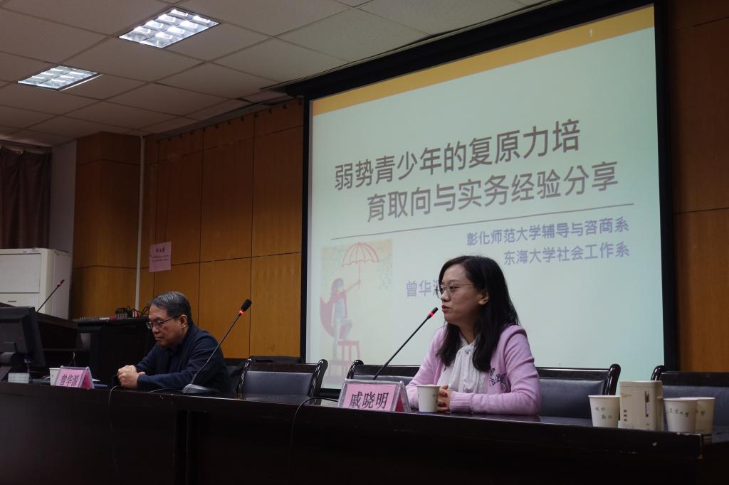 师生作了“弱势青少年的复原力培育取向与实务操作案例分析”的学术讲座。