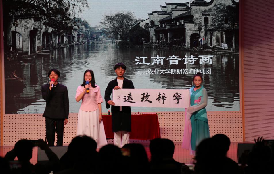 朗朗乾坤朗诵团带来的《江南音诗画》,集合了舞蹈、歌曲、朗诵、书法于一体,他们带我们领略了江南水乡的温柔,一幅烟雨朦胧的江南景象仿佛呈现在观众的眼前。