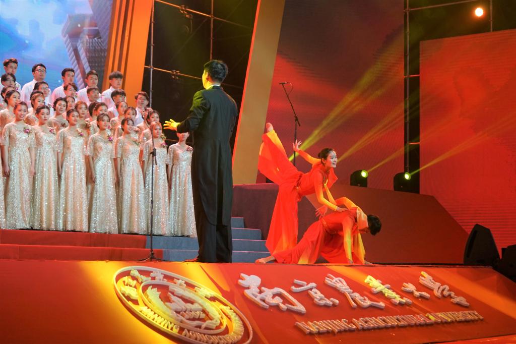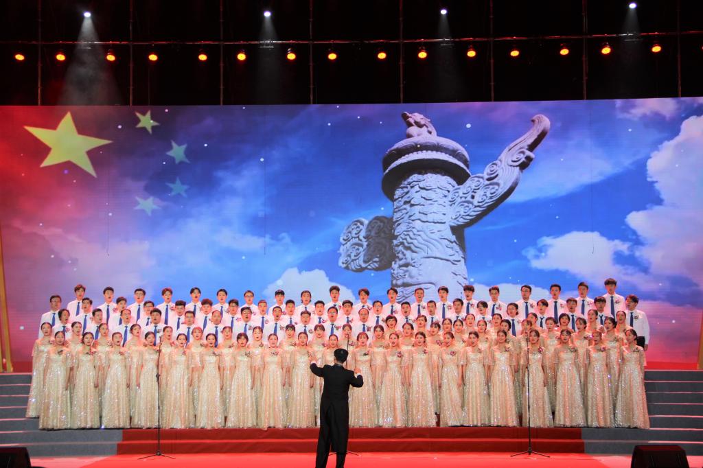 师生气势磅礴的演唱,唱出了新中国成立70周年以来全国人民砥砺前行的时代赞歌;唱出了红旗飘扬的背后,中华民族不断崛起的奋进征程;更唱出了对祖国无限的热爱与深深的祝福。