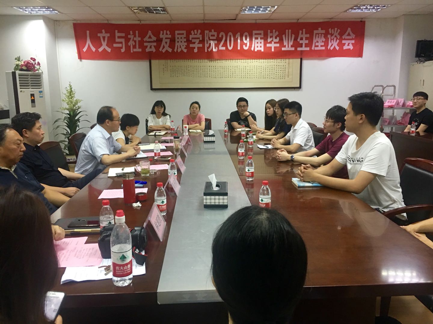 2019年6月12日上午,人文与社会发展学院2019届毕业生座谈会在逸夫楼6041召开。学院党委书记姚科艳,院长姚兆余,党委副书记冯绪猛、关工委常务副主任陈胜甫,团委书记宋林霞,辅导员林延胜以及30多名毕业生代表参加会议。会议由冯绪猛主持。