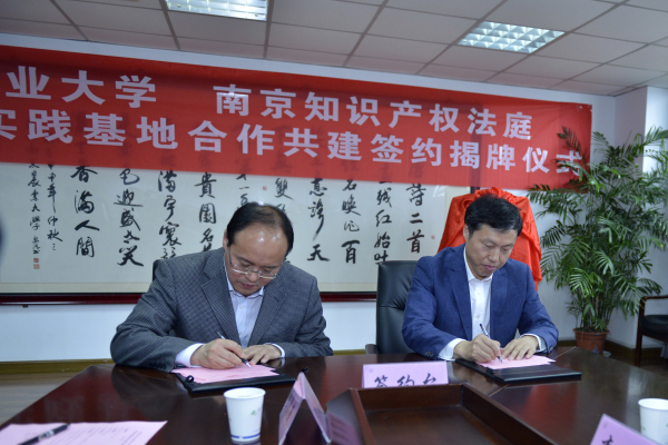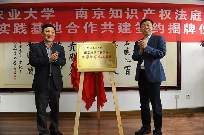 、南京知识产权法庭签署合作共建协议,盛邦跃与南京知识产权法庭庭长姚兵兵共同揭牌。玄武区人民法院副院长时超,南京知识产权法庭副庭长周晔,学校科研院、教务处、马克思主义学院、图书馆知识产权信息服务中心等部门领导参加了本次活动。