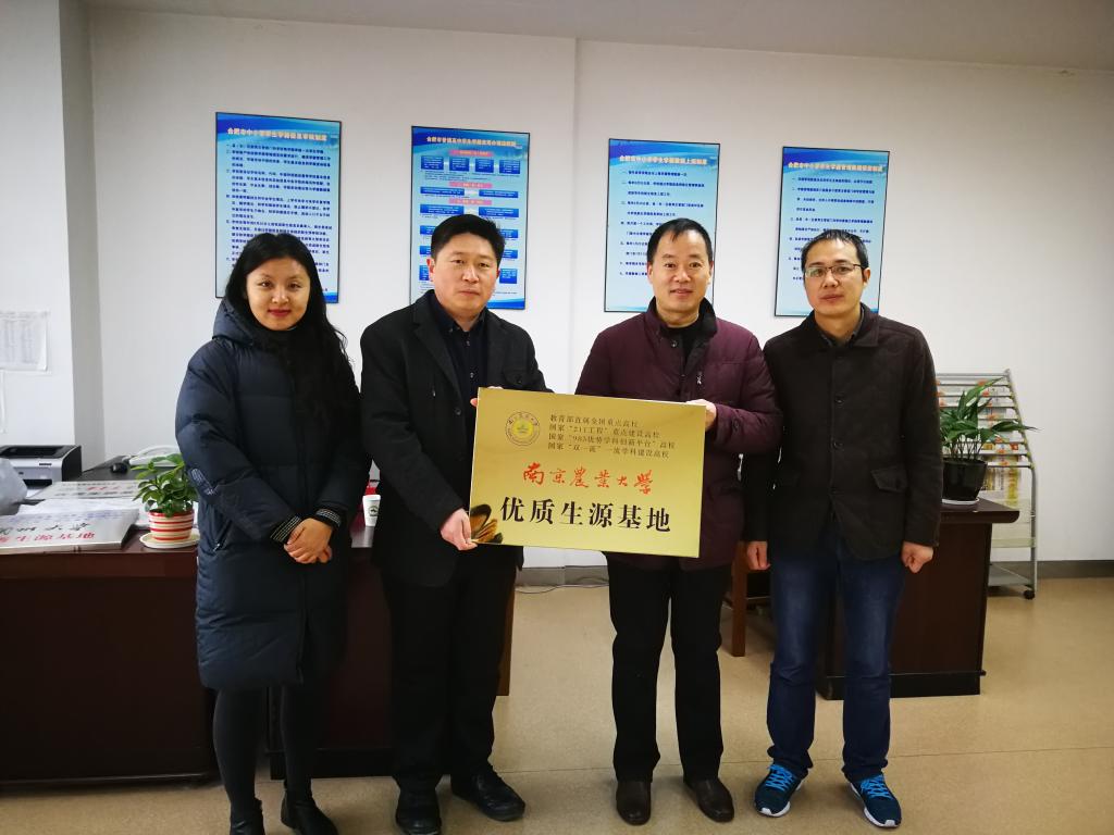 12月10日,宣传小组抵达六安市第一中学,受到校方隆重接待,六安一中校纪委书记陈思玺、副校长尹效成等校领导出席。付坚强院长结合往届学生的高考情况,就高考填报志愿误区、生涯咨询常见问题等内容进行了讲解,陈思玺书记介绍了六安地区近年生源情况和报考情况。双方就如何深化合作进行讨论,希望以此次优质生源基地共建为契机,通过开展“生态课程”,师生互访对点交流,暑期招生咨询与宣传,科普讲座进中学等活动,进一步加强联系与合作。随后在双方见证下签订协议,举行优质生源基地授牌仪式。