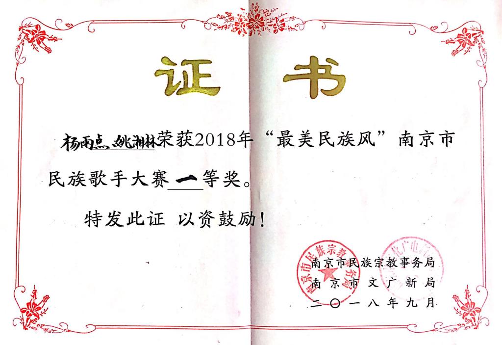学生杨雨点(侗族)与另一名侗族女孩组合成“拉耶组合”登台,以精湛的演唱技巧和热情大方的台风获得评审专家一致好评,从南京市10个区(含江北新区)选送的12名歌手及组合中脱颖而出,喜获一等奖。