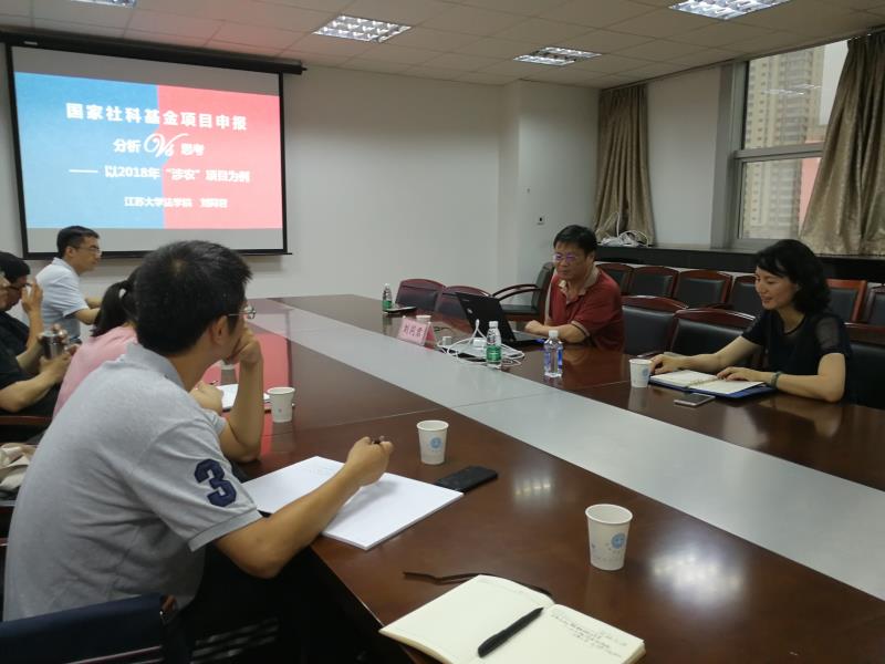 刘同君教授现任江苏大学法学院院长、江苏镇江法治政府研究院院长、镇江市委市政府法律顾问。曾主持国家社科基金项目3项、省部级项目3项(重点1项),也曾担任多项社科基金的评审委员,在社科基金的申报及评审条件的掌握上具有丰富的经验。刘教授以2018年涉农项目为例,作了“国家社科基金项目申报的分析与思考”的报告,报告从国家社科基金的立项情况入手,分析了涉农选题在中标选题中的比例,涉农立项的重点领域、选题特色、立项导向,指出分析指南选题的重要性和跨学科涉农选题的意义。接着刘教授以自己2018年申报的课题为例,详细地为老师们介绍了课题申请书各部分的目的和意义、写作技巧和注意事项,其间回答了老师们提出的各种问题,宾主进行了愉快的交流。刘教授的讲授深入细致、信息量大,详尽解析了申报书撰写过程中的各个难点和重点问题,参与本次交流的老师们纷纷表示受益匪浅。