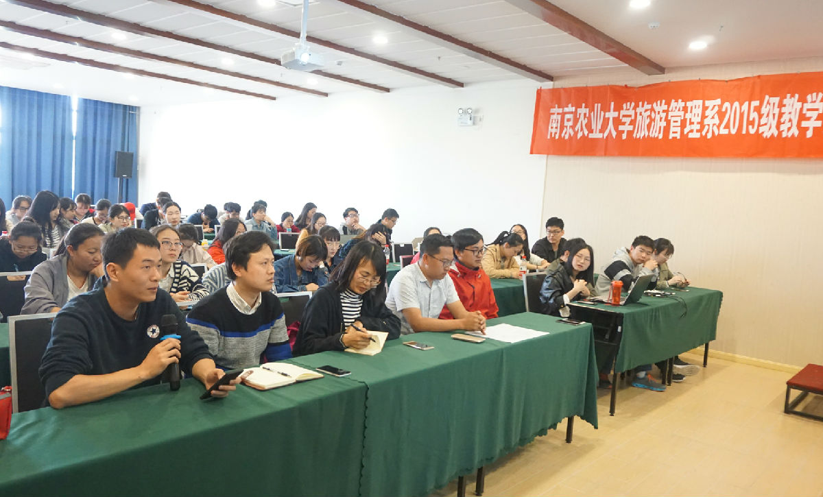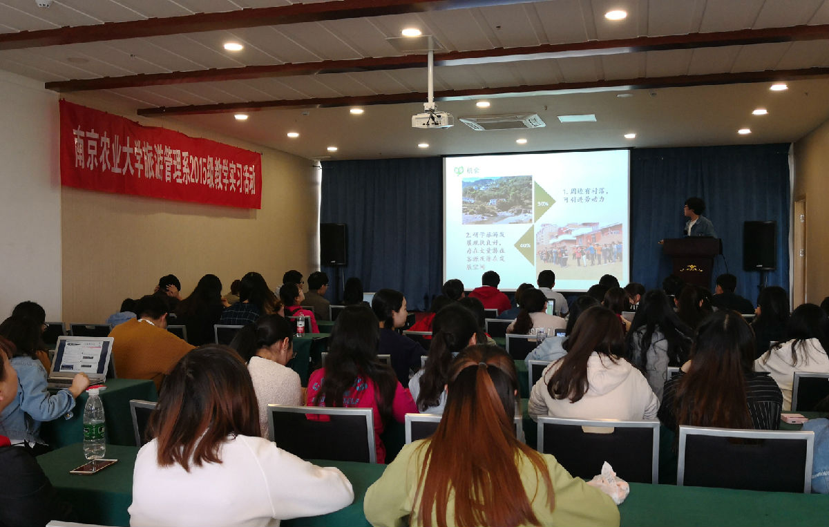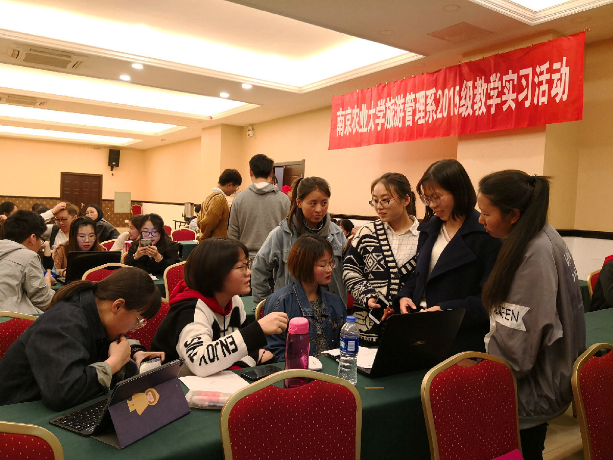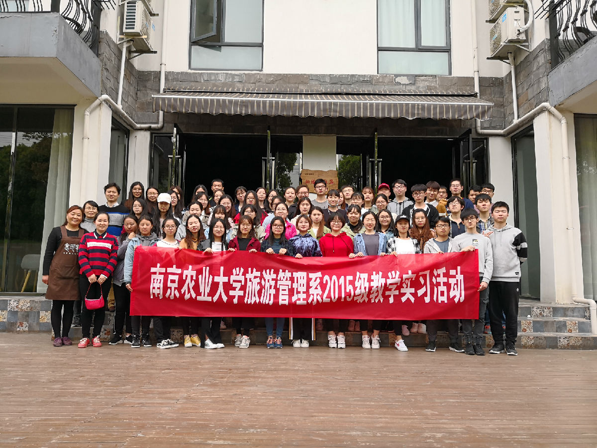 为了解当前旅游业发展状态,增强行业认知,强化专业思维,培养专业技能,提供行业就业机会,提高学生理论联系实际的综合能力,2018年4月16—18日,旅游管理系组织2015级全体学生赴无锡、常州两地开展了为期3天的教学实习。此次实习由旅游管理系黄颖老师带队,院玲玲老师、殷志华老师、伽红凯老师随行,57名学生参与,并按照实习任务形成了八支课题研究团队。本次实习得到了省旅游局、无锡阳山镇政府和常州溧阳天淼山庄的大力支持。