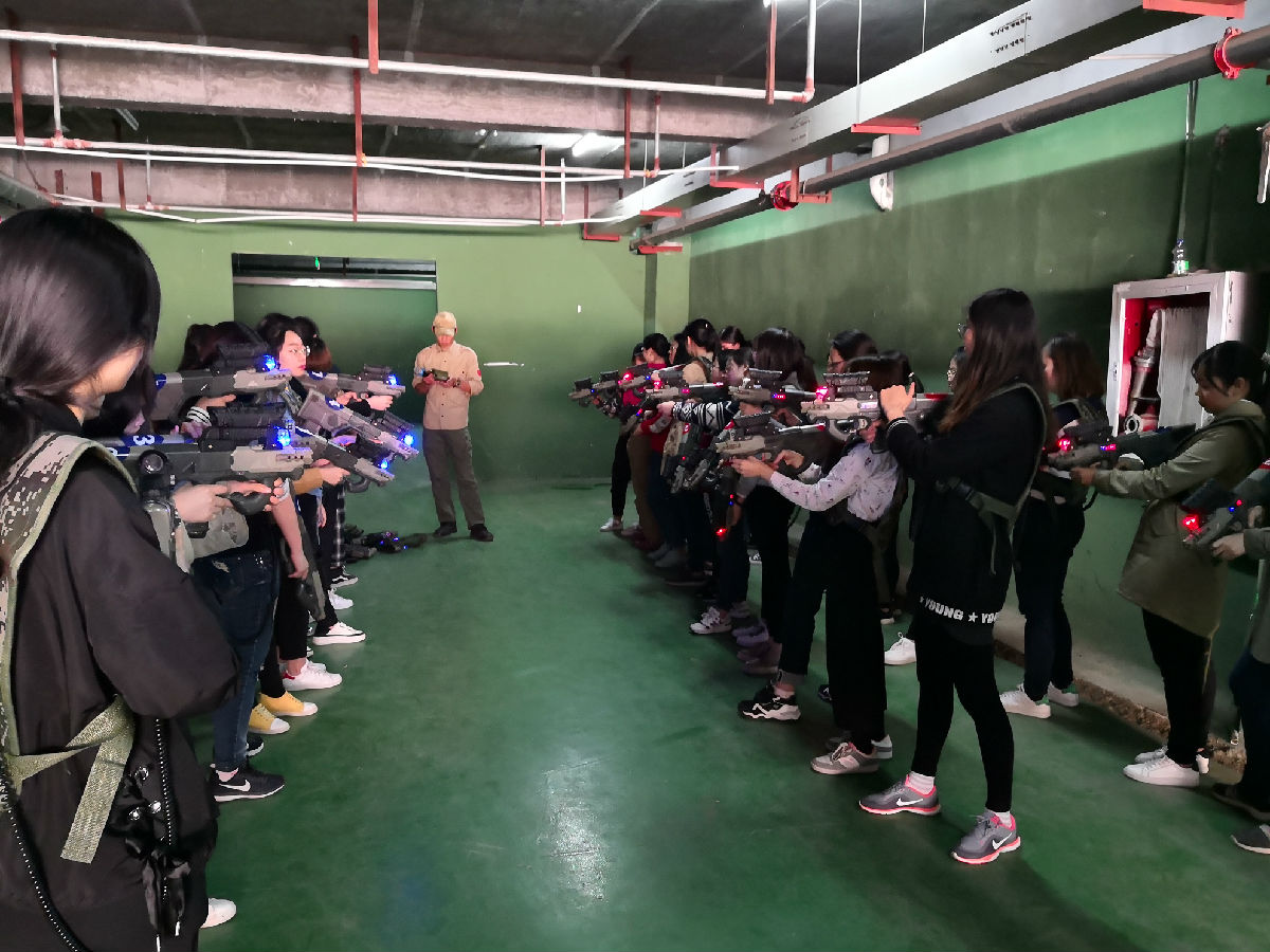 轻松愉快的素质拓展和团建活动过后,张教练带领全体师生在天淼山庄室内CS场地开展了一场激烈的真人CS,全体成员被分为红蓝两方,伽老师为红方司令、殷老师为蓝方司令,经过激烈的角逐,红方获得了胜利。这是一次很好的互动体验,为今后营地教育活动策划拉开了帷幕。