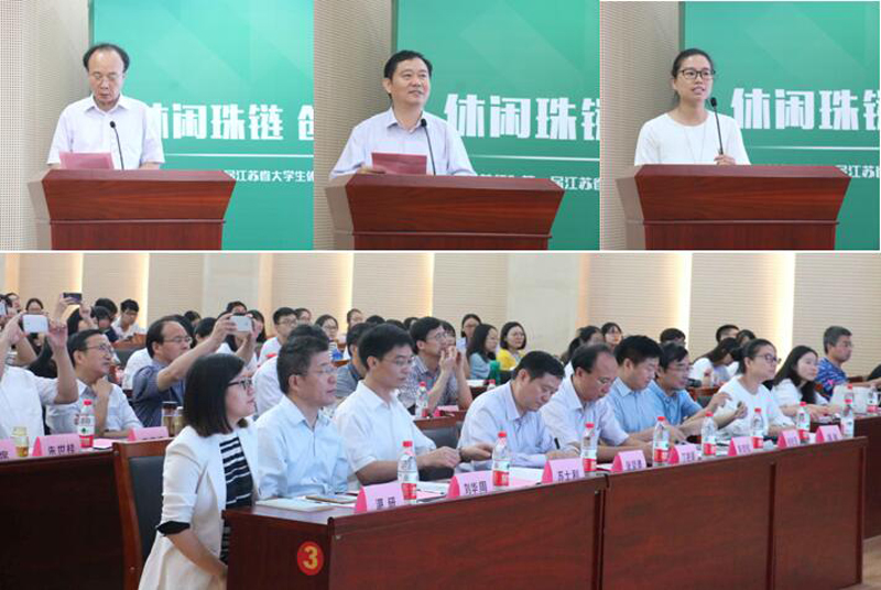 接着江苏省农业委员会副主任张坚勇代表主办方致辞。张主任对休闲农业创意线路的发展提出了三点要求,总结为“六六六”,即为六个变(农区变景区、田园变公园、民房变客房、劳动变运动、产品变商品、盆景变风景),六个为(以传统农业为基、以古朴村落为形、以农耕文化为魂、以创新创意为径、以生态农业为韵、以田园山水为本),六个养(优美环境养眼、农耕文化养脑、新鲜空气养肺、回归自然养心、绿色食品养胃、劳动体验养身)。希望创意线路策划可以运用到这些要素,促使休闲观光事业得到大发展,使当代生活慢下来、城乡美起来、农民富起来,实现可持续发展,最后祝愿此次休闲农业线路创意设计赛圆满成功!