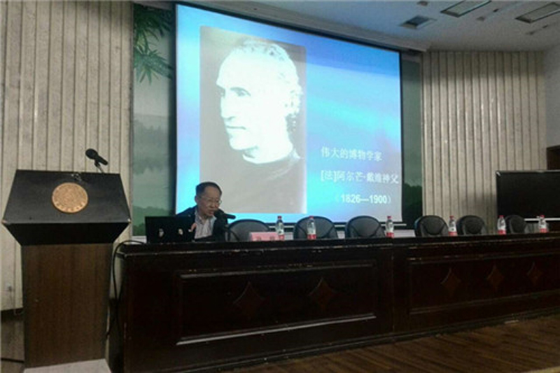 开幕式后,大熊猫文化研究学者孙前教授做客“2015年读书月”系列活动之“名家讲坛”,为广大师生细说了大熊猫的前世今生。报告会由人文社会科学院党委书记朱世桂教授主持。有着数百万年生存史的大熊猫,在人类文明近5000年的历史中,孑遗在川陕地区的崇山峻岭中,淡出人类视野。1869年法国博物学家阿尔芒•戴维神父把它从雅安宝兴县邓池沟教堂引荐到文明社会,它才从科学的角度进入人类视野。孙前通过大量史实和资料的分析,发现半个世纪以来,对大熊猫古名的众多说词是经不起文献和考古发现求证的讹传。在中国历史文献中,驺虞、貘不是大熊猫,康熙之前文献中的貔貅是神话传说中的猛兽也不是大熊猫,胡世安之后的貔貅(即后貔貅说),才是文献中与实体熊猫较为一致的动物。