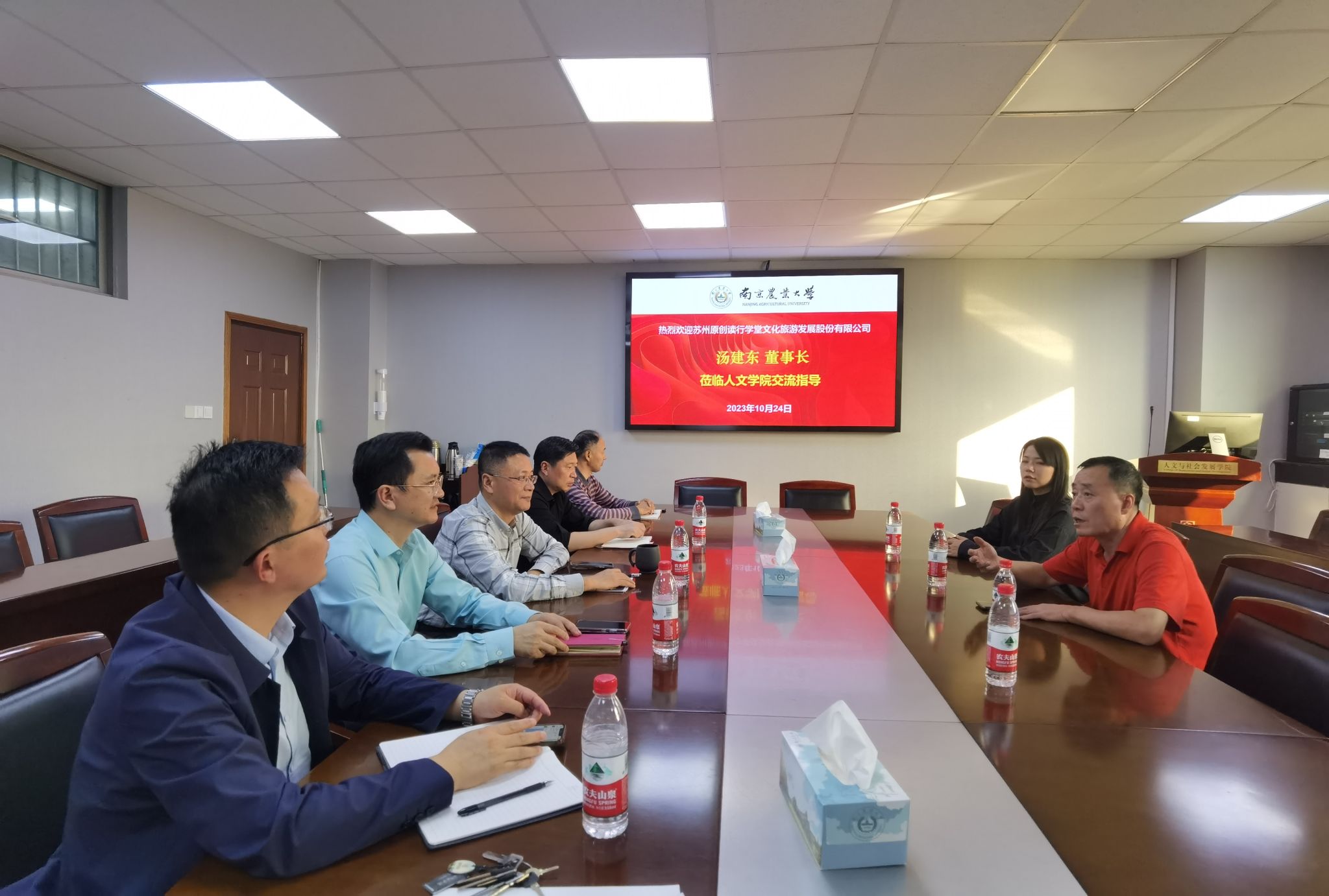 汤建东首先进行公司介绍。苏州原创读行学堂是国家文旅部诚信旅游企业,是全国百强、苏州十佳旅游企业,曾获江苏省旅行社创新发展奖研学旅游一等奖等殊荣。公司下属苏州牧谷农场占地1000亩,是我校校外实践教学基地,也是江苏省首批中小学研学实践示范基地、苏州市首批中小学劳动教育实践示范基地、上海长三角中小学劳动教育实践基地。读行学堂目前拥有众多客源和研学线路,与其它旅行社公司相比优势显著。汤总希望通过母校的指导,使得公司进一步发展壮大。