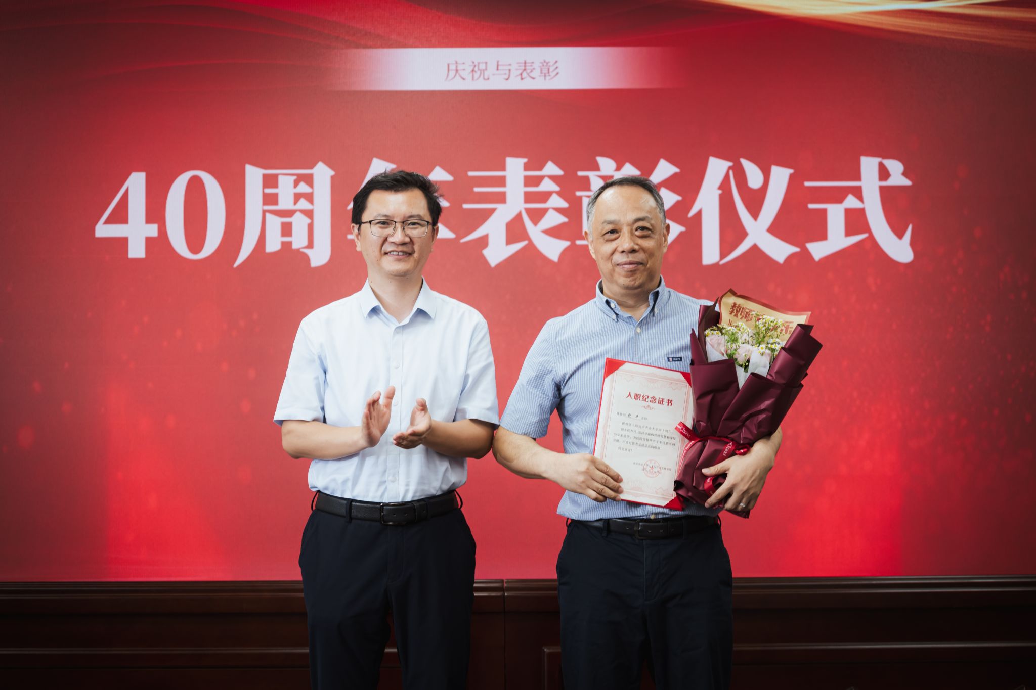 在入职周年表彰仪式中,学院领导李日葵书记、桑运川副书记、朱利群副院长和戚晓明副院长,分别为入职满40、30、20、10周年的教职员工颁发了证书和鲜花,以表彰他们多年来为学院发展所做出的卓越贡献。