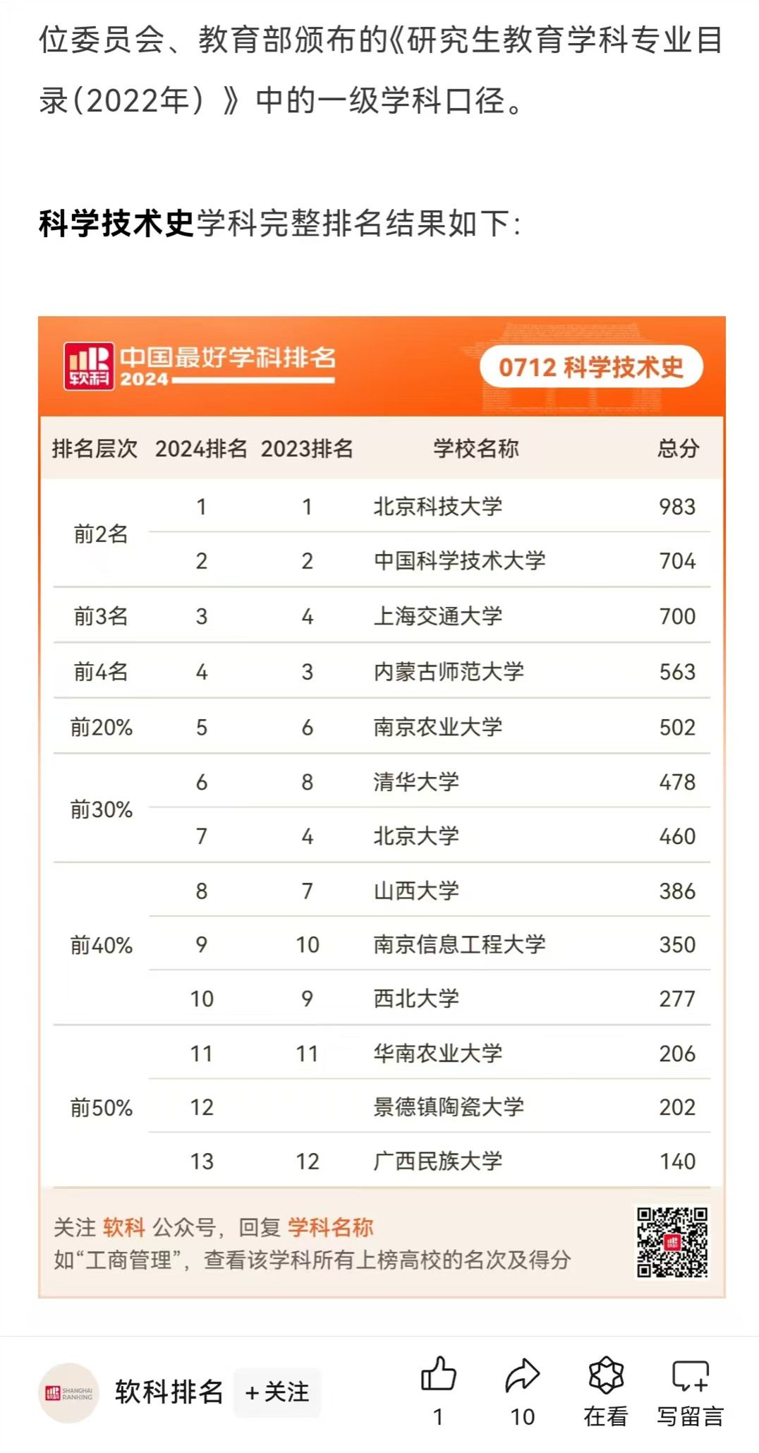 科学技术史学科点在此次排名中表现突出,成功跻身全国前五(2023年排名第六,较去年上升一位),充分彰显了其在该领域的强劲实力和卓越成就。