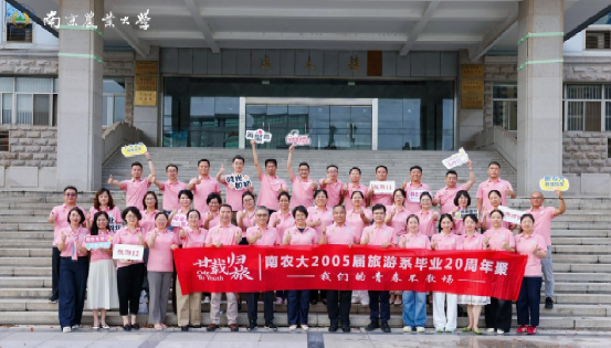 “此去须怀报国志,莫忘此处是故乡。”廿载重逢,变的是容颜,不变的是“诚朴勤仁”的南农精神。当晚霞为主楼披上金纱,这群“永远的南农人”带着满满的温暖与力量,再次踏上人生新征程。