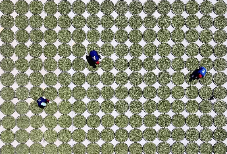 2025年3月19日,福鼎一家茶企工人在晾晒白茶茶青。2025年5月19日,福建福鼎白茶文化遗产系统顺利通过专家评审,正式被联合国粮食及农业组织认定为全球重要农业文化遗产。中新社记者 张斌 摄