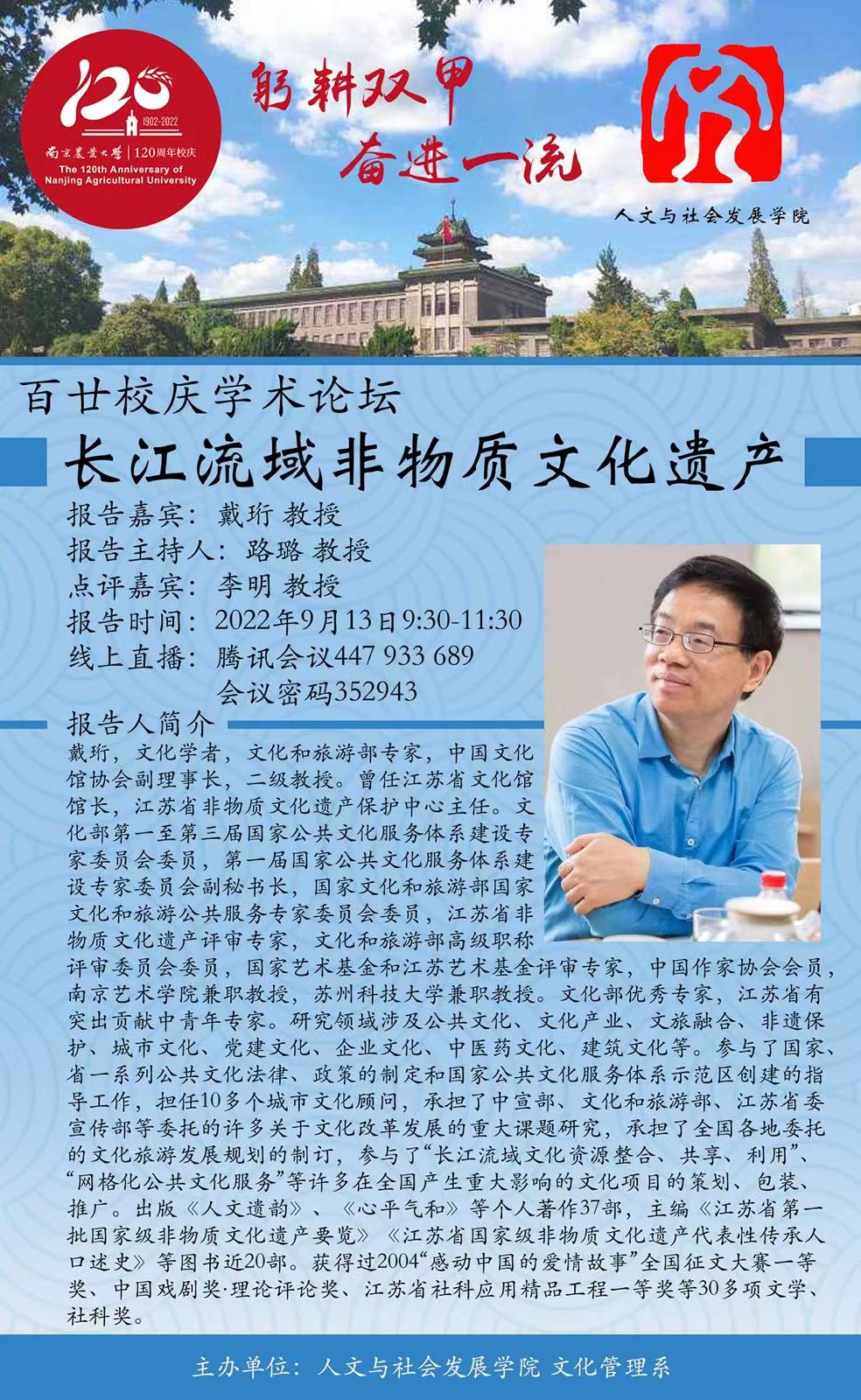 戴珩,文化学者,文化和旅游部专家,中国文化馆协会副理事长,二级教授。曾任江苏省文化馆馆长,江苏省非物质文化遗产保护中心主任。文化部第一至第三届国家公共文化服务体系建设专家委员会委员,第一届国家公共文化服务体系建设专家委员会副秘书长,国家文化和旅游部国家文化和旅游公共服务专家委员会委员,江苏省非物质文化遗产评审专家,文化和旅游部高级职称评审委员会委员,国家艺术基金和江苏艺术基金评审专家,中国作家协会会员,南京艺术学院兼职教授,苏州科技大学兼职教授。文化部优秀专家,江苏省有突出贡献中青年专家。研究领域涉及公共文化、文化产业、文旅融合、非遗保护、城市文化、党建文化、日本无码、中医药文化、建筑文化等。参与了国家、省一系列公共文化法律、政策的制定和国家公共文化服务体系示范区创建的指导工作,担任10多个城市文化顾问,承担了中宣部、文化和旅游部、江苏省委宣传部等委托的许多关于文化改革发展的重大课题研究,承担了全国各地委托的文化旅游发展规划的制订,参与了“长江流域文化资源整合、共享、利用”、“网格化公共文化服务”等许多在全国产生重大影响的文化项目的策划、包装、推广。出版《人文遗韵》、《心平气和》等个人著作37部,主编《江苏省第一批国家级非物质文化遗产要览》《江苏省国家级非物质文化遗产代表性传承人口述史》等图书近20部。获得过2004“感动中国的爱情故事”全国征文大赛一等奖、中国戏剧奖·理论评论奖、江苏省社科应用精品工程一等奖等30多项文学、社科奖。参与指导、撰稿、制作的《一壶春秋》《守望家园》《丝竹雅韵萦江南》等多部电视纪录片在央视、江苏卫视等平台播出。创意、策划、组织、实施了2008北京奥运会江苏“祥云小屋“非物质文化遗产展示、2010上海世博会“江苏周”江苏省非物质文化遗产展示活动、“百年百场”江苏省优秀群众文艺作品巡演、江苏发展大会“江苏乡情文化展”、2022长江文化节“金色之光—2022长江流域非遗金属工艺主题展”等以及数百场省级以上非遗展示、大型文艺晚会、文艺演出、美术展览,并担任总策划、总撰稿。曾参加2011欧亚经济论坛、海峡两岸高层文化论坛等几十场高端论坛和智库峰会,并作主旨演讲。曾应邀在中央文化和旅游管理干部学院、国家图书馆、上海图书馆、南京图书馆、上海交大、南京大学、东南大学、南京师范大学、浙江大学、山东大学、西南大学以及全国各地作过数百场讲座。新华社、人民日报、中国文化报、新华日报、南方日报、中央电视台、江苏电视台、东方电视台等数十家主流媒体作过采访和报道。