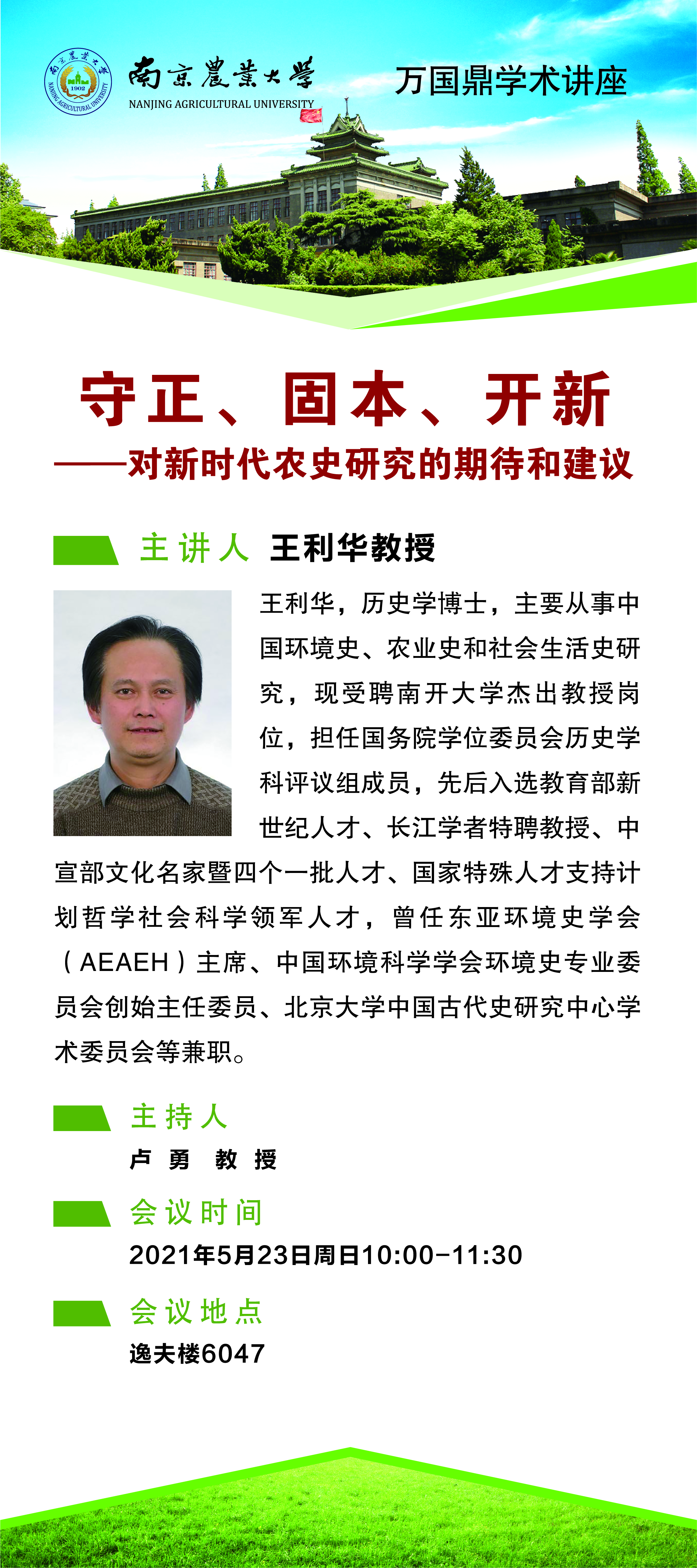 讲座主题:守正、固本、开新——对新时代农史研究的期待和建议