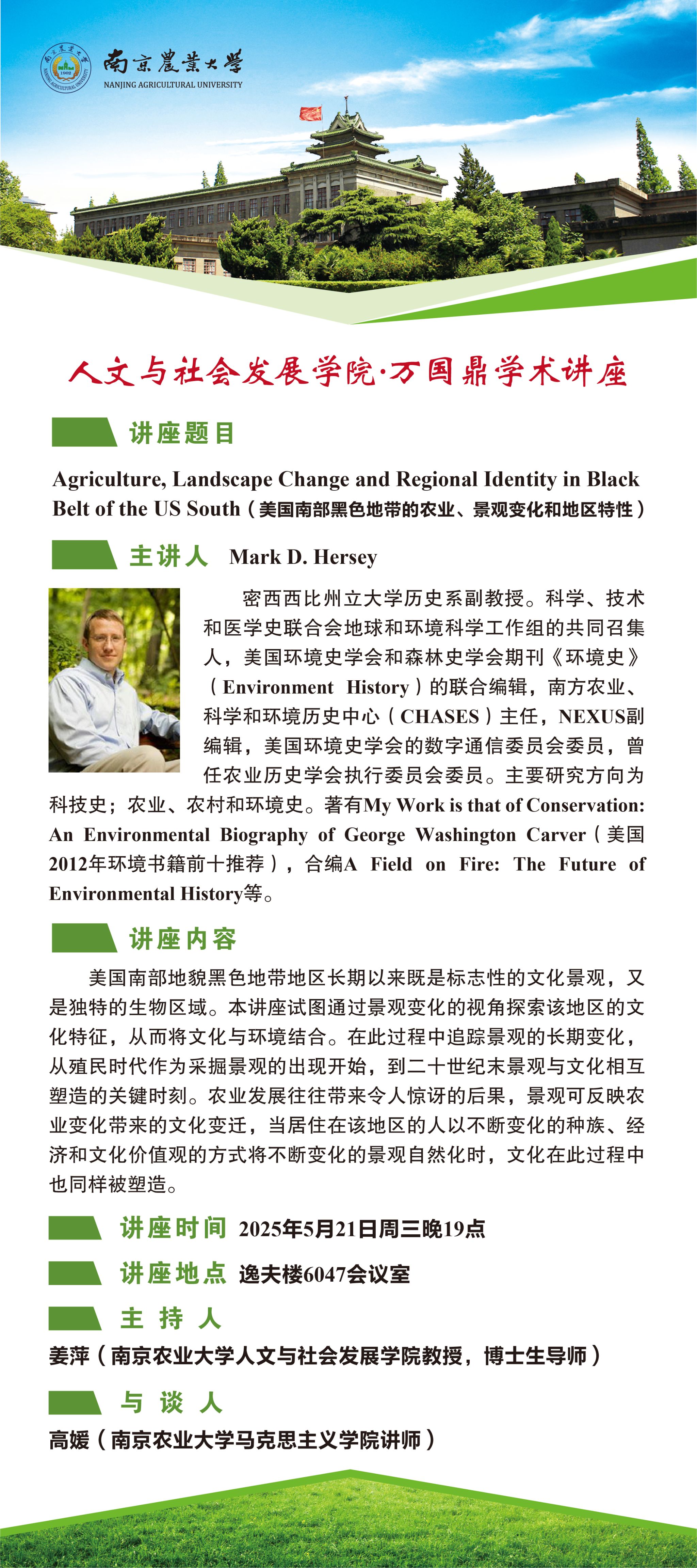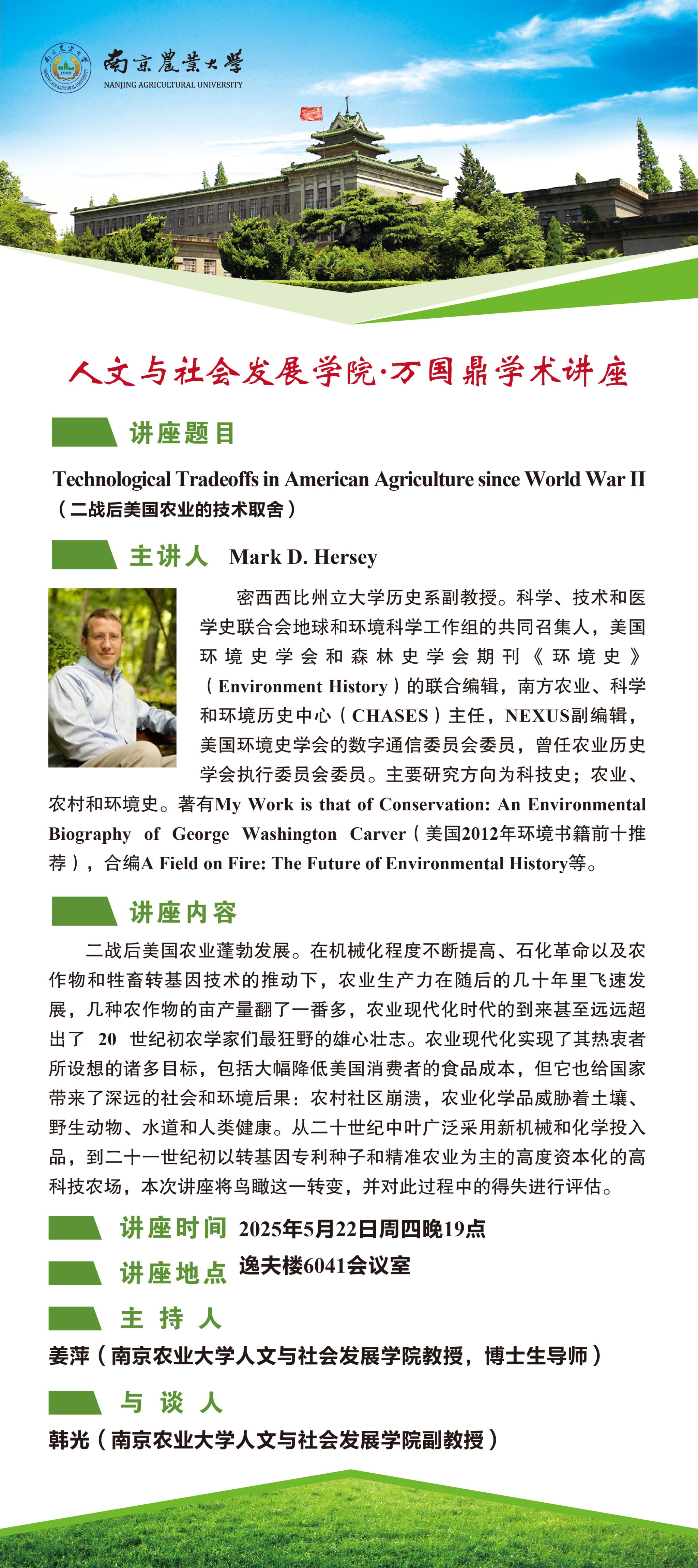密西西比州立大学历史系副教授Mark D.Hersey应邀作客万国鼎学术讲座