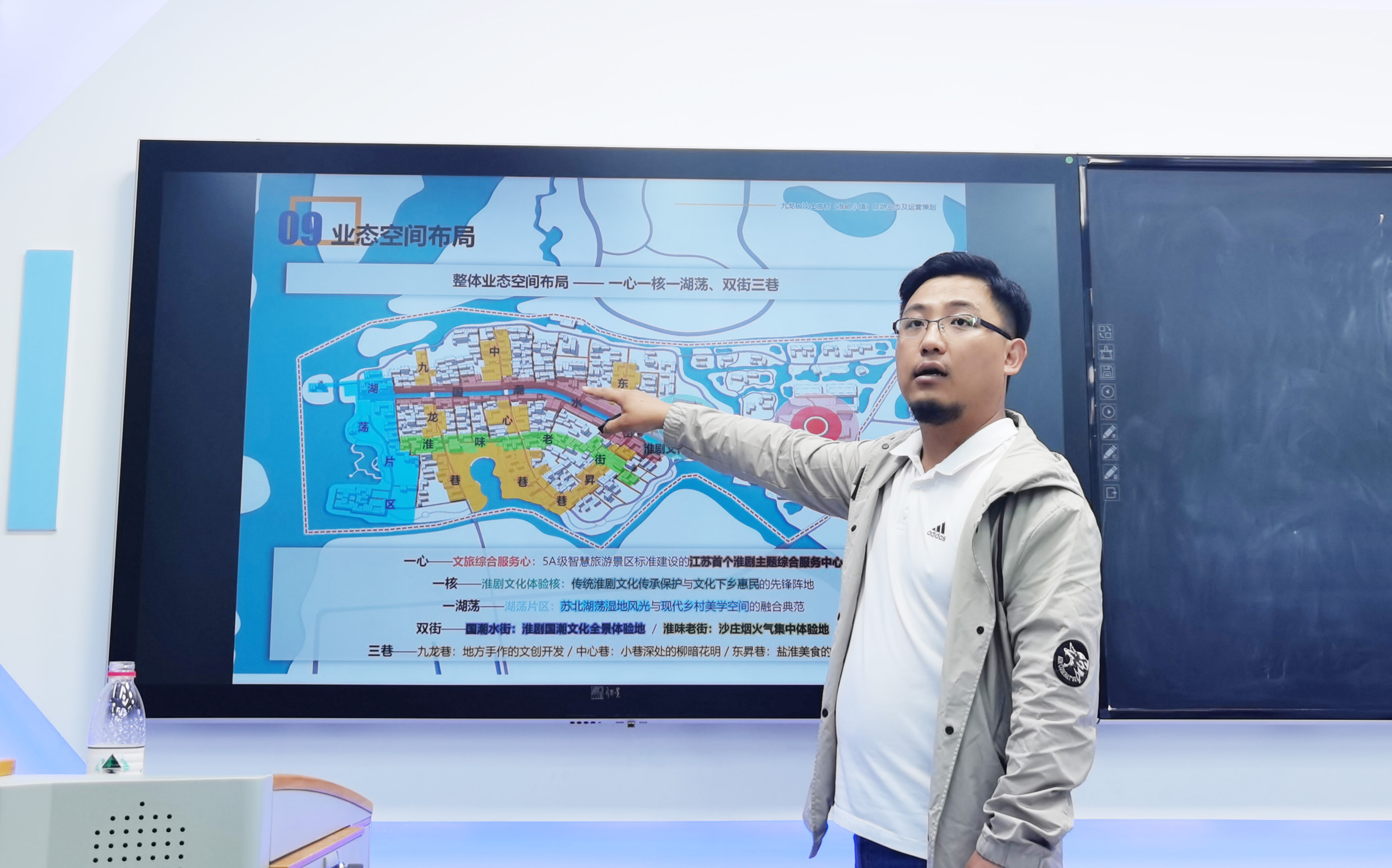在目标功能定位时,石浩玉指导同学,需要注意多重目标定位,来适应政府和市场的多方需求。通过大数据分析,来精准把控业态空间布局。通过一个“淮”字共振,来很好利用旧空间,嵌入多功能,赋能潮时尚,唱响新淮剧,重塑东方戏曲美学。“主力业态保主题,兼容业态保收入,限制业态不准入”,这是石浩玉对于不同业态的定位选择和深刻理解,深入人心。