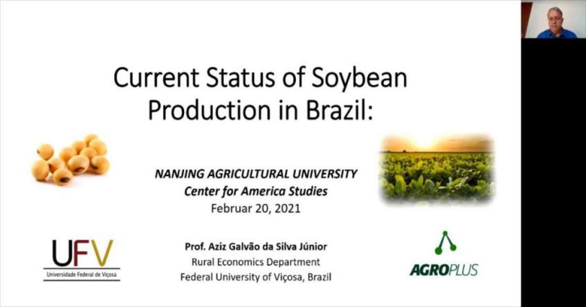 邀请拉美一体化联邦大学费里南多·维莫尔、巴西维索萨大学戴宝拉·祖尼、阿方森·祖尼和阿奇兹·祖尼奥等四位专家进行在线视频讲座。讲座由张敏副教授主持,30多名师生参加了这次讲座。