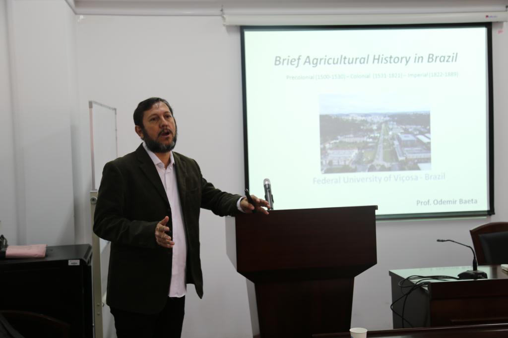 巴西是农牧业大国,农牧业是巴西经济的支柱产业。Odemir Baeta教授首先介绍了巴西的国名来源于一种叫做巴西木的木材。之后,他提出在殖民时代开始后,巴西农业发生了很大的变化,大量移民迁入,其农业推广种植园经济,并与奴隶制紧密相关,农业生产主要是为了对外贸易。17世纪后,畜牧业和大豆等产业迅速发展起来,同时也出现了许多问题,如滥伐森林、过度汲取资源、土壤肥力下降、缺少灌溉和农业技术落后等。当时巴西农业最大的特点是产量大但质量低,农业经济主要是为了市场需求并强调专业化。后来,咖啡的繁荣,对巴西的政治、经济、交通等产生了巨大影响。Thiago Mota教授则向我们介绍了西非国家塞内加尔的稻米生产和对外传播情况,特别是其对巴西稻米生产的影响。他还指出欧洲大开拓年代之后,有了西方开发的新土地,稻作由早期的欧洲殖民者引入新开拓区域,还可能由来自非洲的奴隶带入。玉米起源于南美洲, 起源驯化可能开始于7000~10000年以前,迟于人类迁徙到美洲其他地区。16世纪以后,从美洲传播到欧洲等其他地区。最后,张敏副教授向在座师生简要总结了两位教授的讲座内容和学术观点,并鼓励大家积极向他们请教和学习。