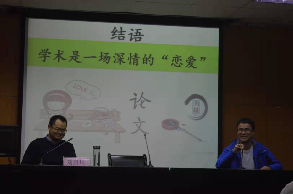 一开始,刘启川老师和大家分享了求学经历和心路历程,然后从条件、方法、示例这三个方面介绍了如何进行论文写作。
