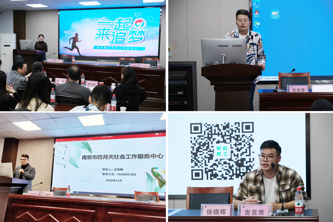 随后,11家机构负责人或代表分别介绍了机构概况和目前开展的服务项目,并对研究生实习工作提出了期望和要求。其中,江苏省民政厅机关党委专职副书记、江苏省养老服务指导中心主任、江苏省老年公寓院长孙燕表示,江苏省老年公寓作为省级养老服务平台,长期以来秉持个性化服务的理念,拥有经验丰富的养老服务专家,能够为南农社工实习生提供足够的成长空间。南京市心贴心老年人服务中心副主任张莲娣介绍了长期以来与南农MSW合作培养社会工作研究生的情况,表达了对实习生的希冀和期待,希望研究生在实习中逐渐掌握实务方法和技能,逐步成为能够承担项目服务的社工人才。悦民社会工作服务中心总干事徐晓辉介绍了该机构多年来开展青少年健康成长服务工作的过程和成就,充分肯定了我校社会工作研究生在实习过程中的认真态度、敬业精神和责任担当。交流会上,2019级社会工作研究生陈奇结合自己的实习工作,介绍了实习期间在知识增长和能力提升方面的收获。