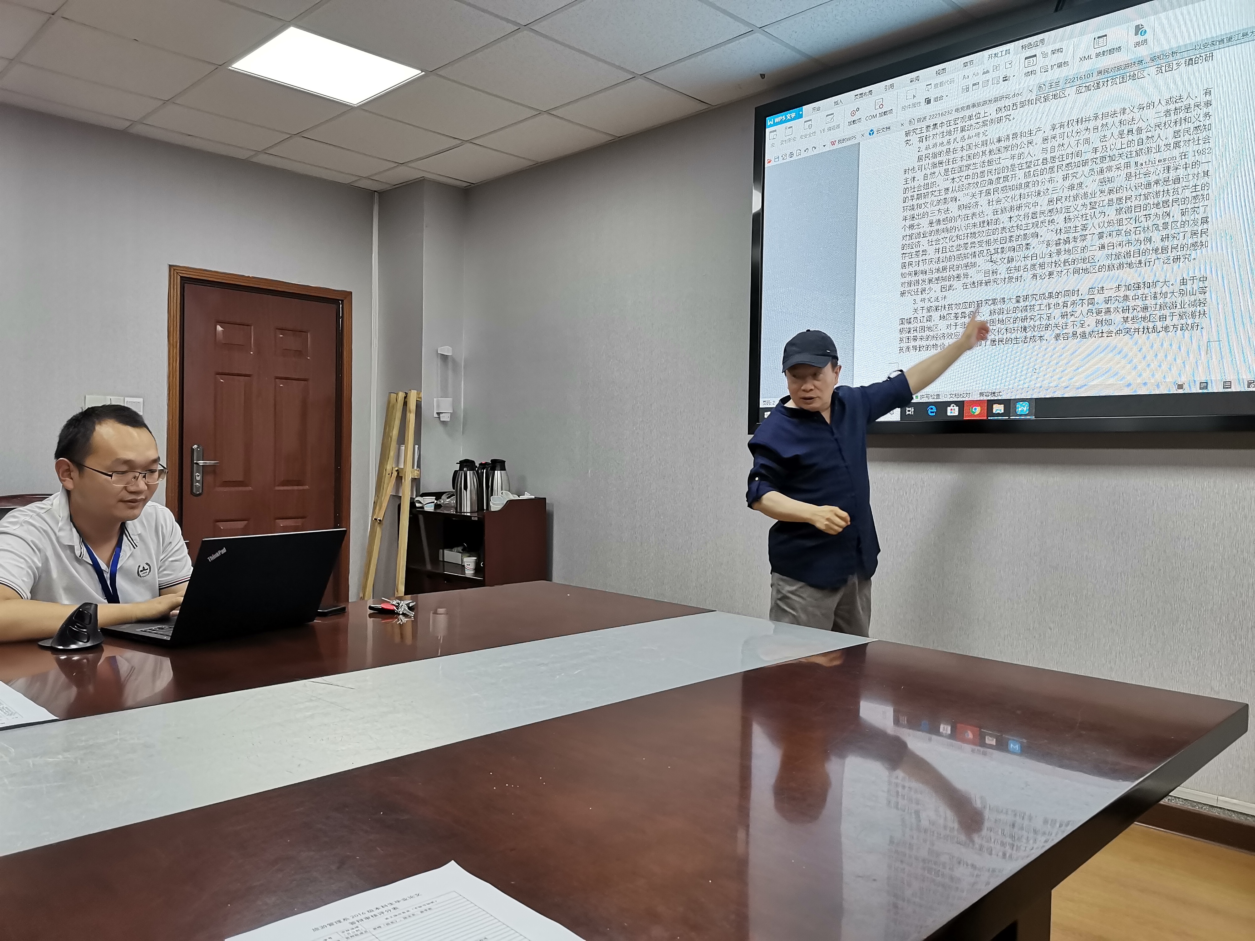 旅游管理、法学等2个专业,采用了答辩审核方案。每个专业的答辩委员分成3-4组,认真审核学生提交的论文和答辩PPT,然后提出审读意见,并反馈给学生对照修改。