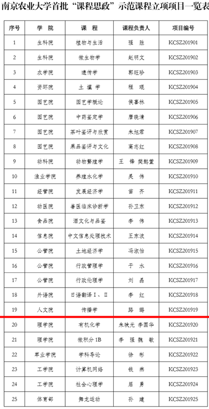 “课程思政”建设,旨在引导教师自觉将马克思主义、民族精神、爱国情怀、人文关怀等融入专业教育,鼓励教师充分发掘和运用学科蕴含的思想政治教育资源,促进思政教育与专业教育有效融合,营造“课课有思政,人人能育人”的良好氛围,从而构建思政教育与专业教育同心同向同行的育人格局,全面形成具有“南农”特色的“课程思政”教育教学体系,为实现建设农业特色世界一流大学战略目标奠定基础。(胡必强供稿)
