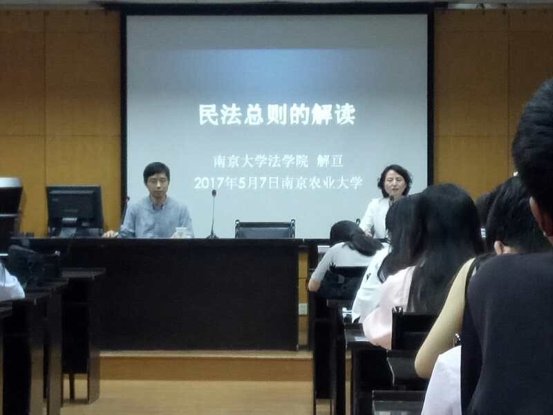 2017年5月7日上午,南京大学法学院教授解亘教授莅临日本无码 ,为法律系师生带来“民法总则的解读”。